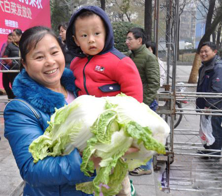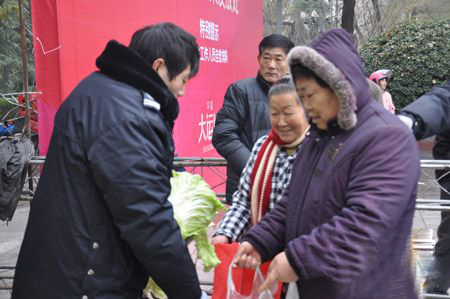 据活动的负责人尤经理介绍,活动的目的主要是为了解决菜农的滞销问题,另一方面也方面市民过个温暖的冬天,“吃个火锅,涮个羊肉,大白菜都是必不可少的”。