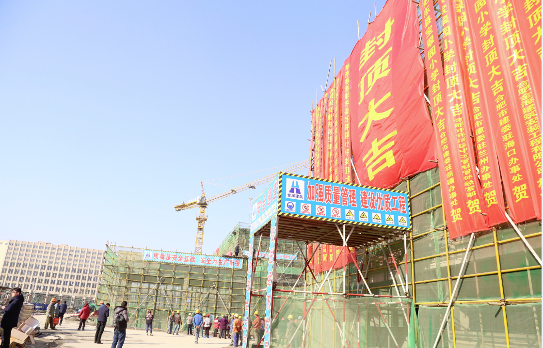 2017年12月19日上午由华盛集团合肥金海建筑安装工程有限责任公司建设的肥东县宝翠园小学顺利封顶。