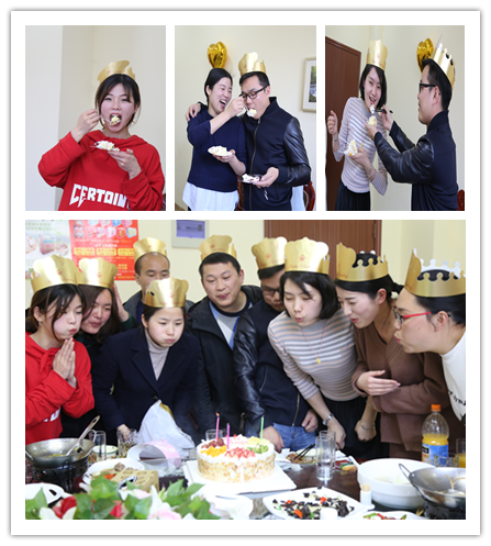 在品尝完怡然居的特色美食后,人力资源部送上了精心准备的生日蛋糕。伴随着祝福声,几名寿星共同点燃蛋糕上的蜡烛,共同许下美好的愿望,烛光下洋溢着笑容的脸庞,展现了“不是一家人,胜似一家情”温馨氛围。