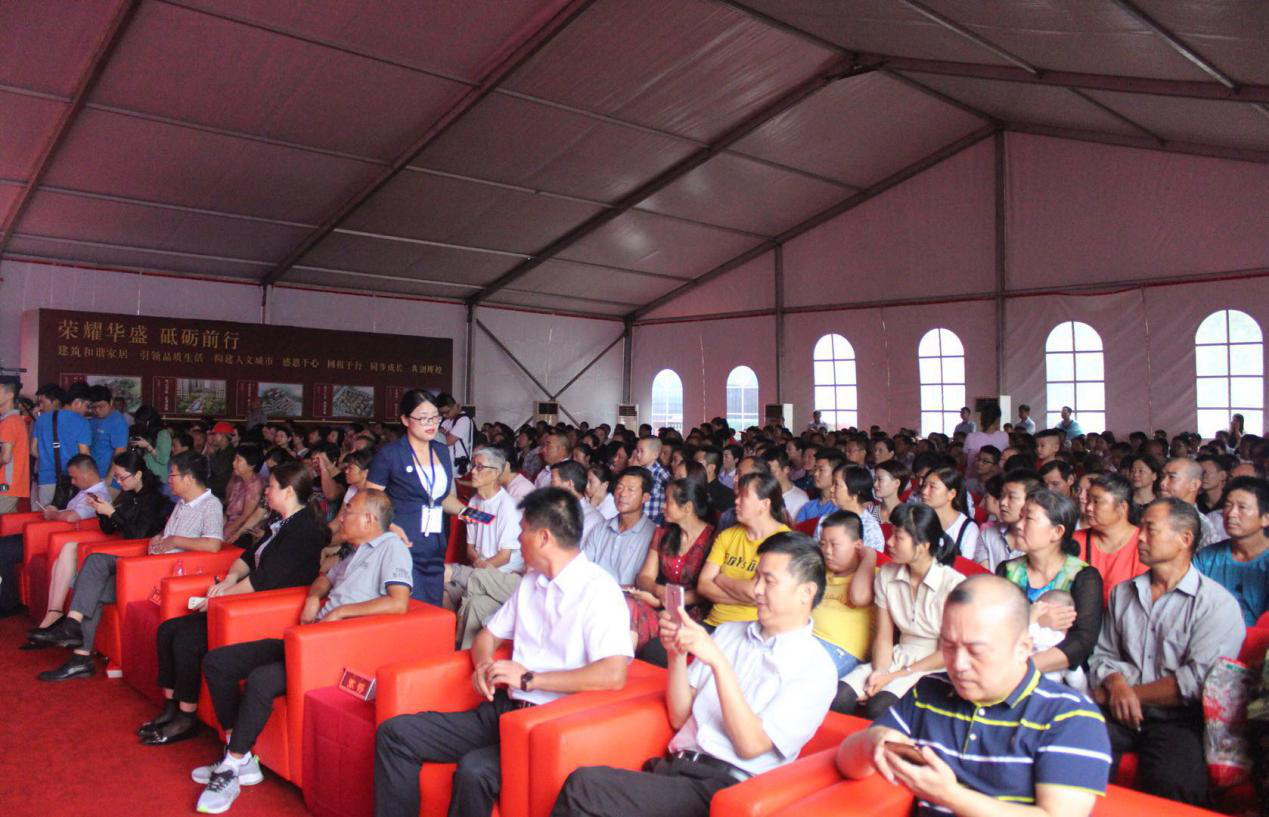 战鼓表演结束后,美丽大方的主持人登台,对参与此次营销中心暨千万级花园会客厅开放活动的领导、来宾致以诚挚的感谢,并对华盛·江山御府项目进行了简介。在各位来宾热烈掌声中,华盛集团总裁丁长亮先生登台致辞,言语间流露出对项目前景的信心及对社会各界支持的感谢。
