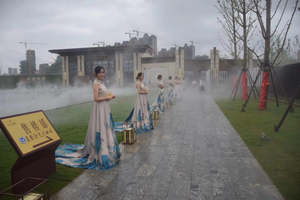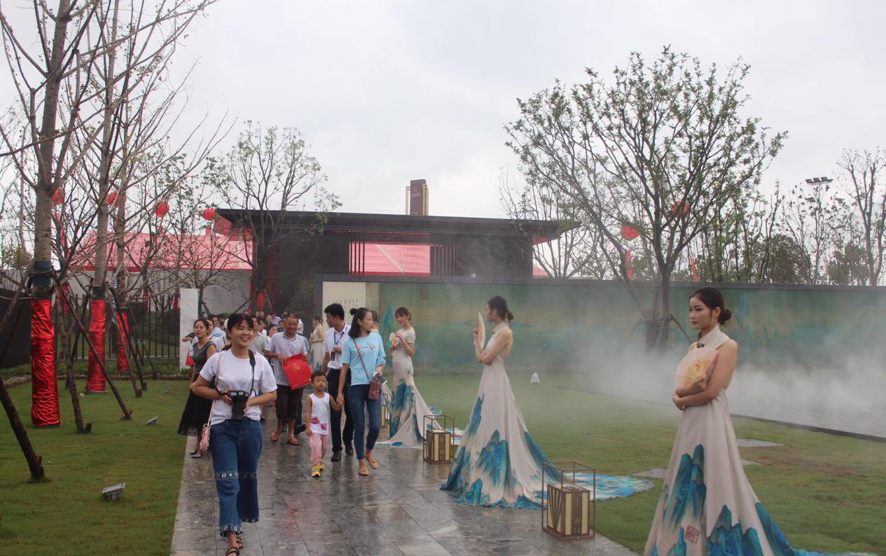 随着礼炮腾空而起,华盛·江山御府府门徐徐开启,来宾们有序的走进项目景观示范区。