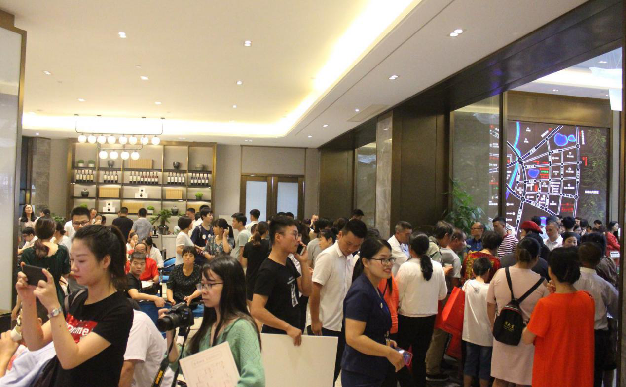 不少周边的居民慕名而来,营销中心人头攒动。置业顾问热情耐心地为大家答疑解惑,整个营销中心热闹非凡。