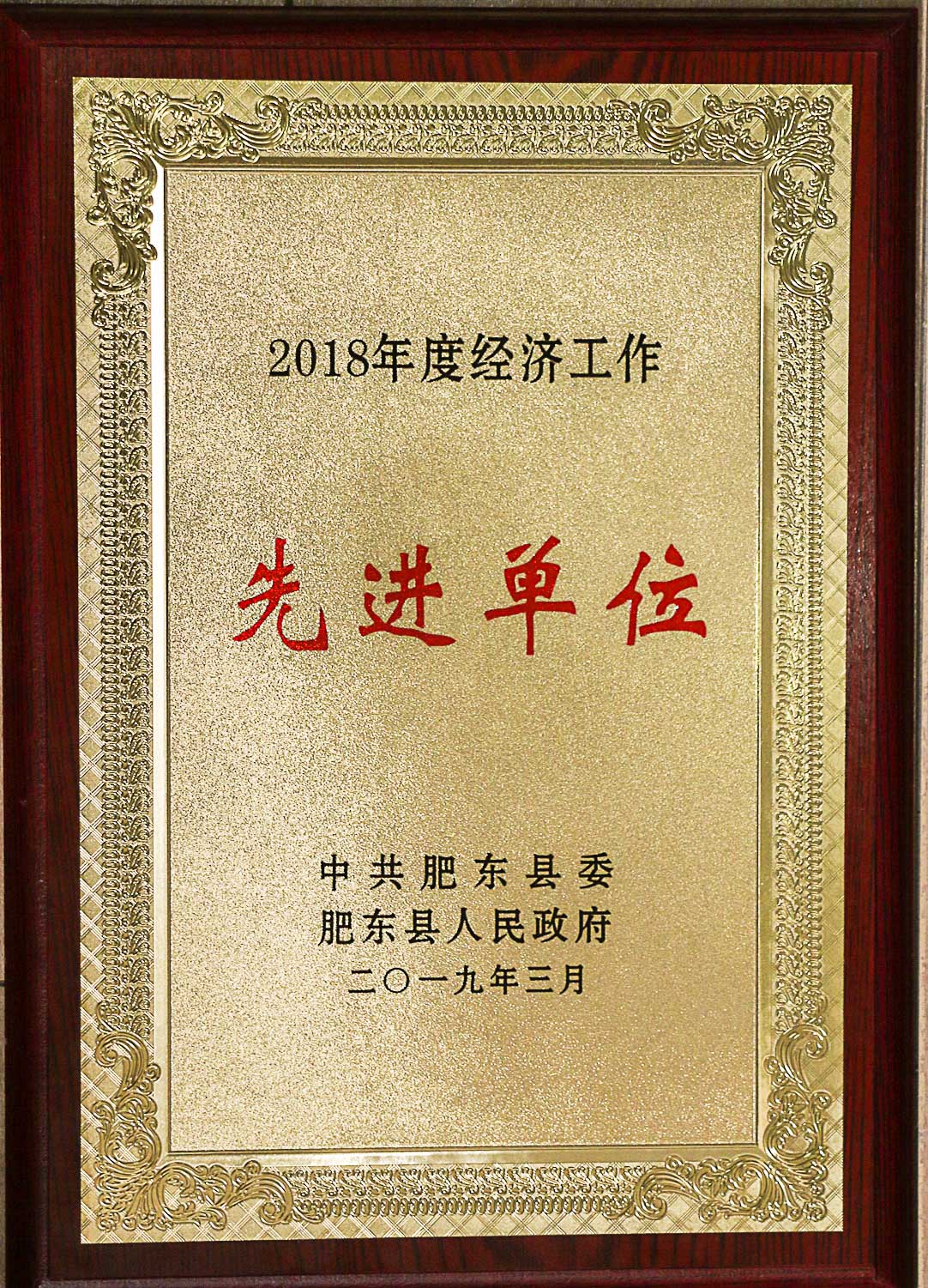 安徽华盛集团荣获肥东县2018年度“特别贡献企业”荣誉称号