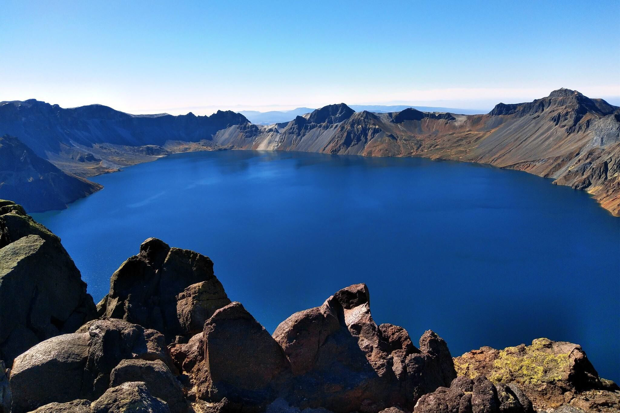 上午11时,集团员工全部到达长白山天池并且顺利登顶。长白山得名于其主峰多白色浮石与积雪,站在山顶远远望去,众多山峰林立,似有众山峰“长相守,到白头”之景,寓意极深。长白山天池是一座休眠火山,火山口积水成湖,是中国最大的火山湖,也是世界上最深的高山湖泊。水面面积10平方千米,蓄水量20亿立方米。现为中朝两国的界湖。天池气候变幻莫测,风大雾重,时常是本来晴空万里,却忽然雾起云涌,将整个天池遮盖得严严实实,不一会儿又云消雾散,绿水碧透,岚影波光,再现绝世美景。而这次华盛集团员工们运气爆棚,有幸一睹长白山天池风采。
