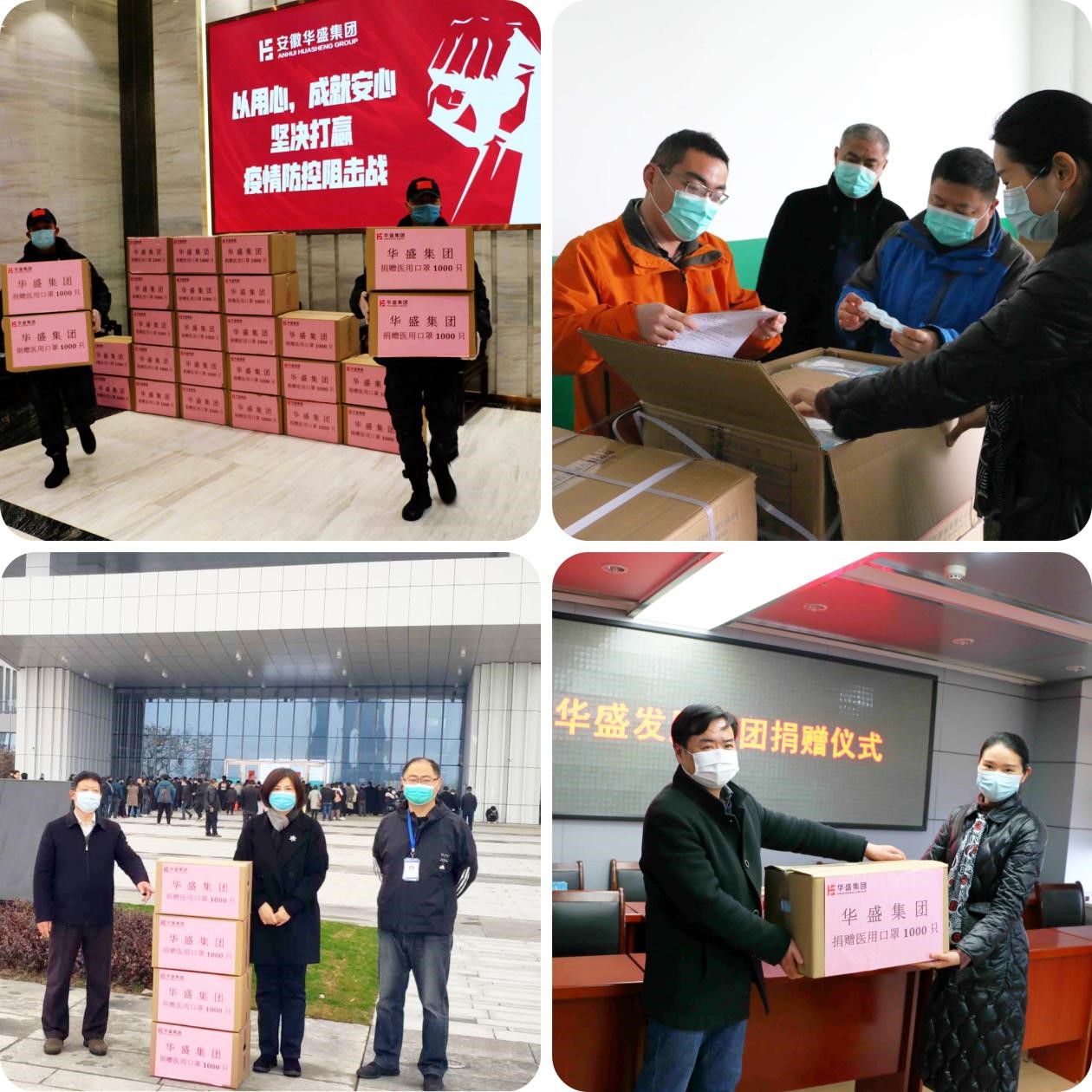2020年3月9日,华盛集团通过合肥市红十字会定向捐赠了24000只医用外科口罩给肥东疫情防控应急指挥部。同时向肥东县行政服务中心、肥东县店埠镇人民政府、肥东县撮镇镇人民政府、肥东县公安局、肥东县融媒体中心等一线防疫部门捐赠了40000只医用外科口罩,合计捐赠了64000只爱心口罩,总价值32万元。助力政府部门打赢这最后一公里的防疫战!政企同心,众志成城,共同打赢这场战“疫”。