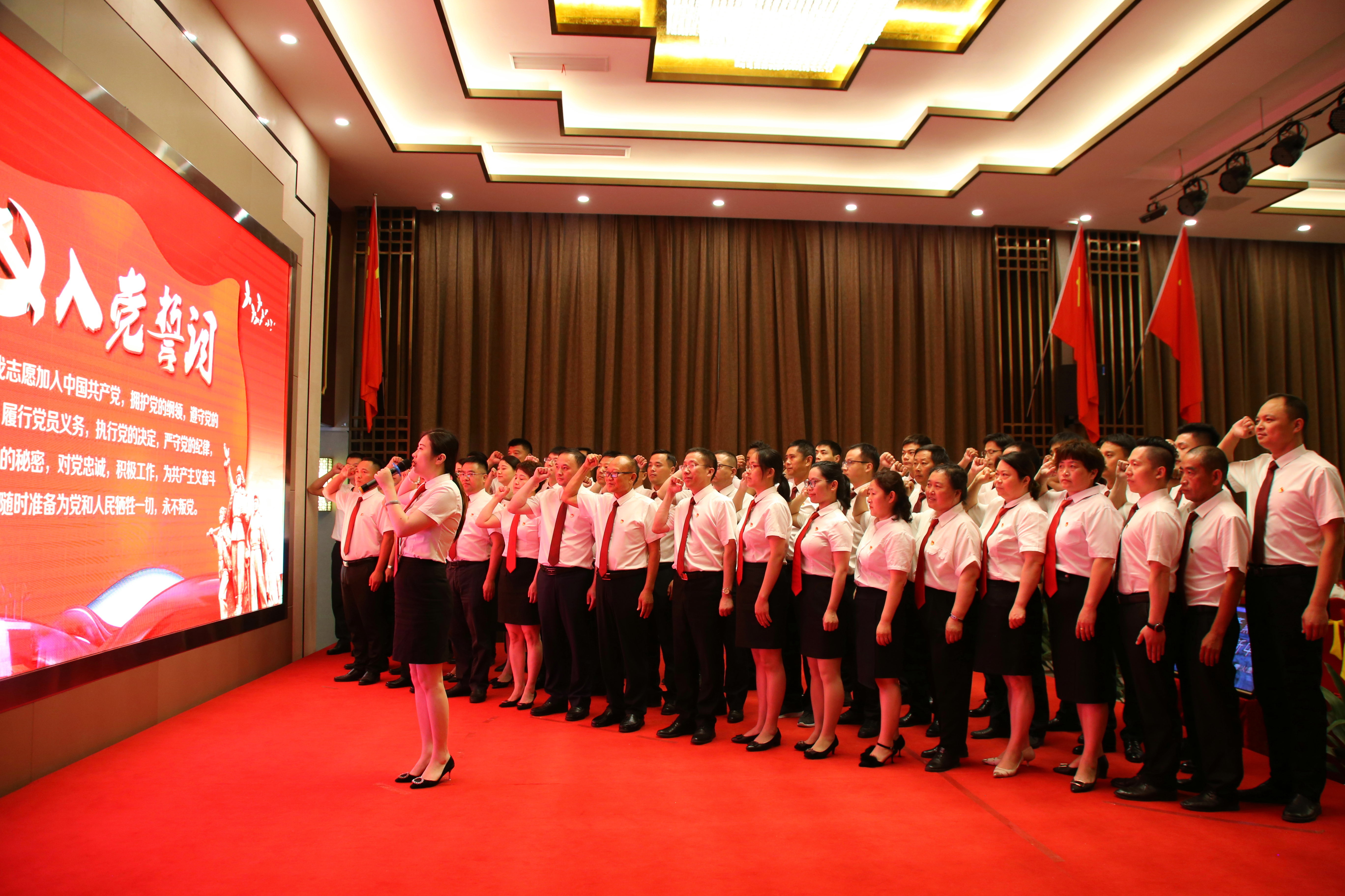 接着,李莉书记带领参加活动的全体党员同志一起上台重温入党誓词。“我志愿加入中国共产党,拥护党的纲领,遵守党的章程,履行党员义务,执行党的决定,严守党的纪律,保守党的秘密,对党忠诚,积极工作,为共产主义奋斗终身,随时准备为党和人民牺牲一切,永不叛党。”