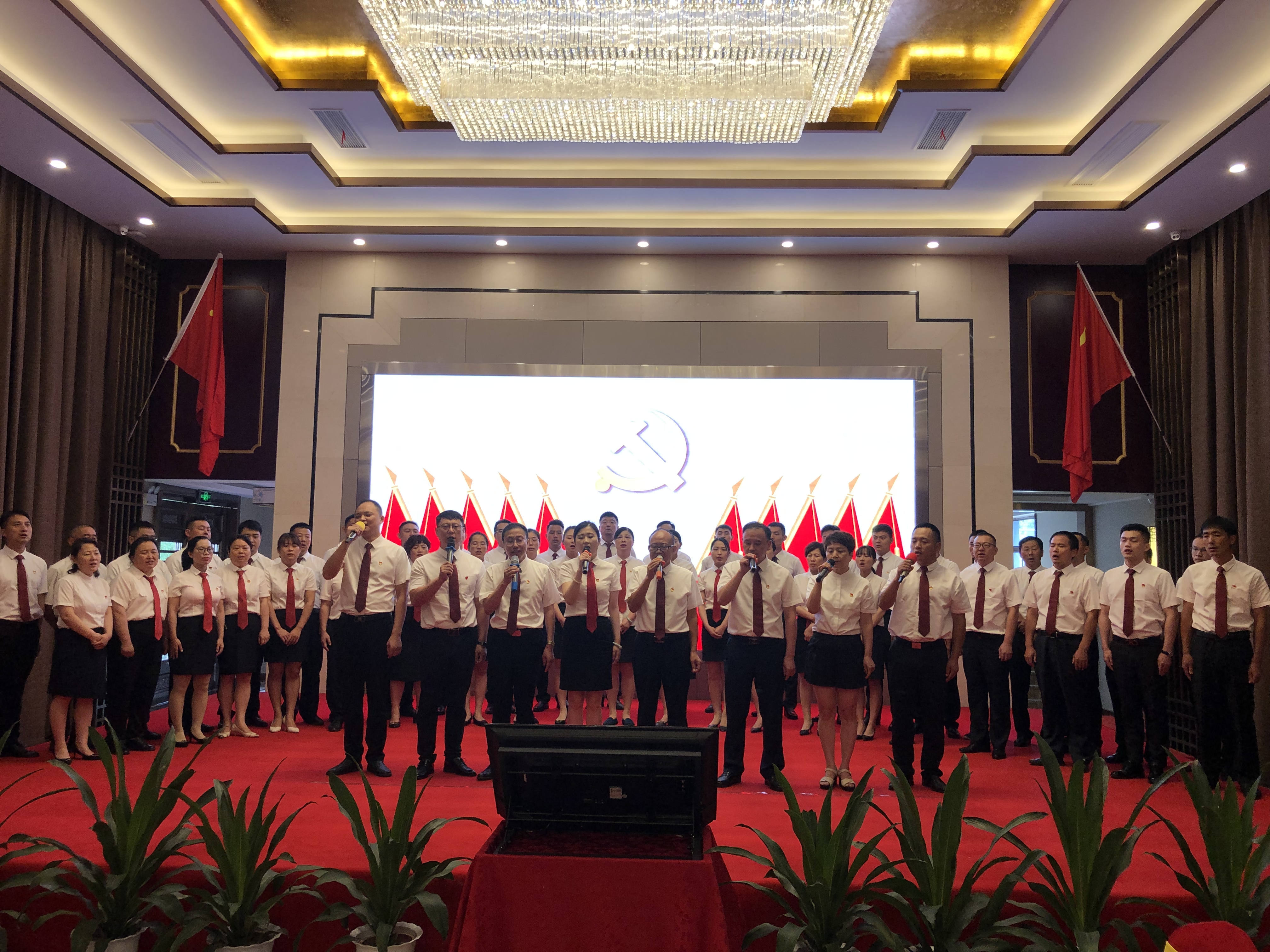 没有共产党,就没有华夏儿女的骄傲和自豪;没有共产党,就没有祖国山川的壮阔和恢弘;没有共产党,就没有中华民族的复兴和辉煌。历史证明,只有中国共产党,才能带领中国人民实现独立解放、生活幸福、民主富强和伟大复兴。华盛集团全体党员员工一起登台的大合唱《没有共产党就没有新中国》和《歌唱祖国》将活动气氛推上高潮。