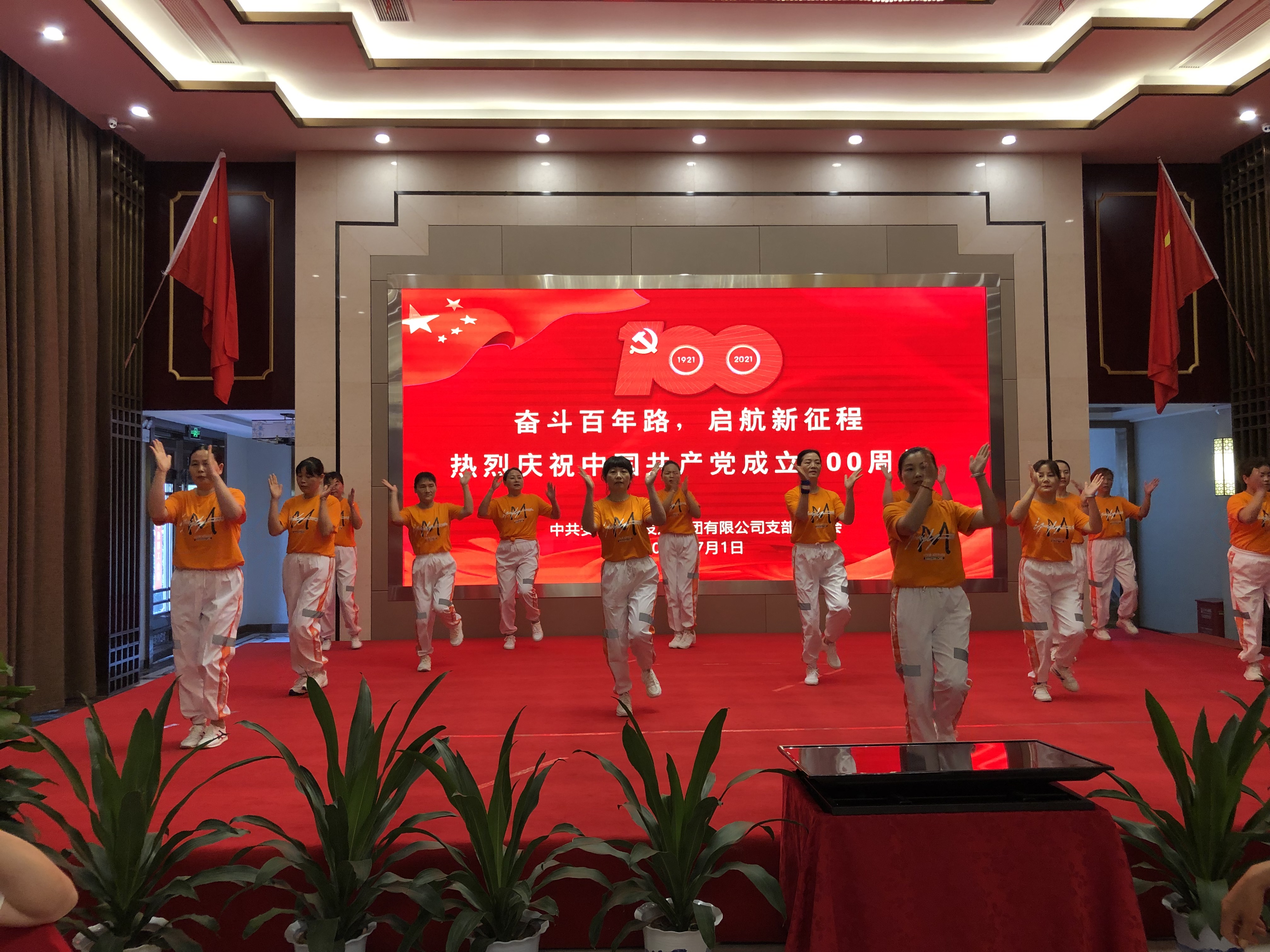 我们的党,高山巍峨,雄伟的山峰俯瞰百年党史的风起雨落;我们的党,大河奔腾,浩荡的洪流冲过百年党史的翻卷漩涡。接着,建华舞蹈队表演的《中国红》和《歌唱祖国》为本次活动增添了激昂向上的活动氛围。