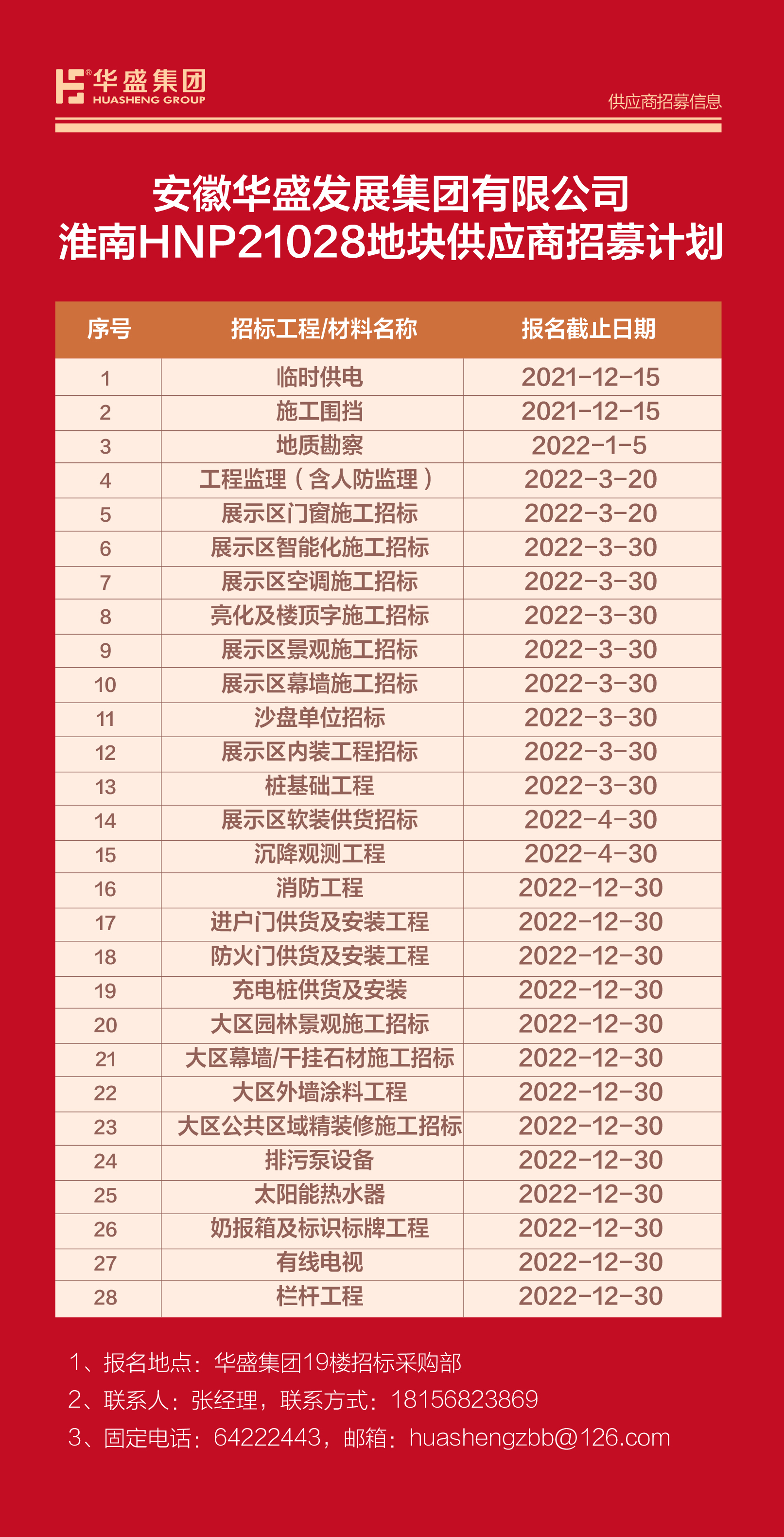 华盛集团淮南HNP21028地块28项业务招募供应商,欢迎报名!