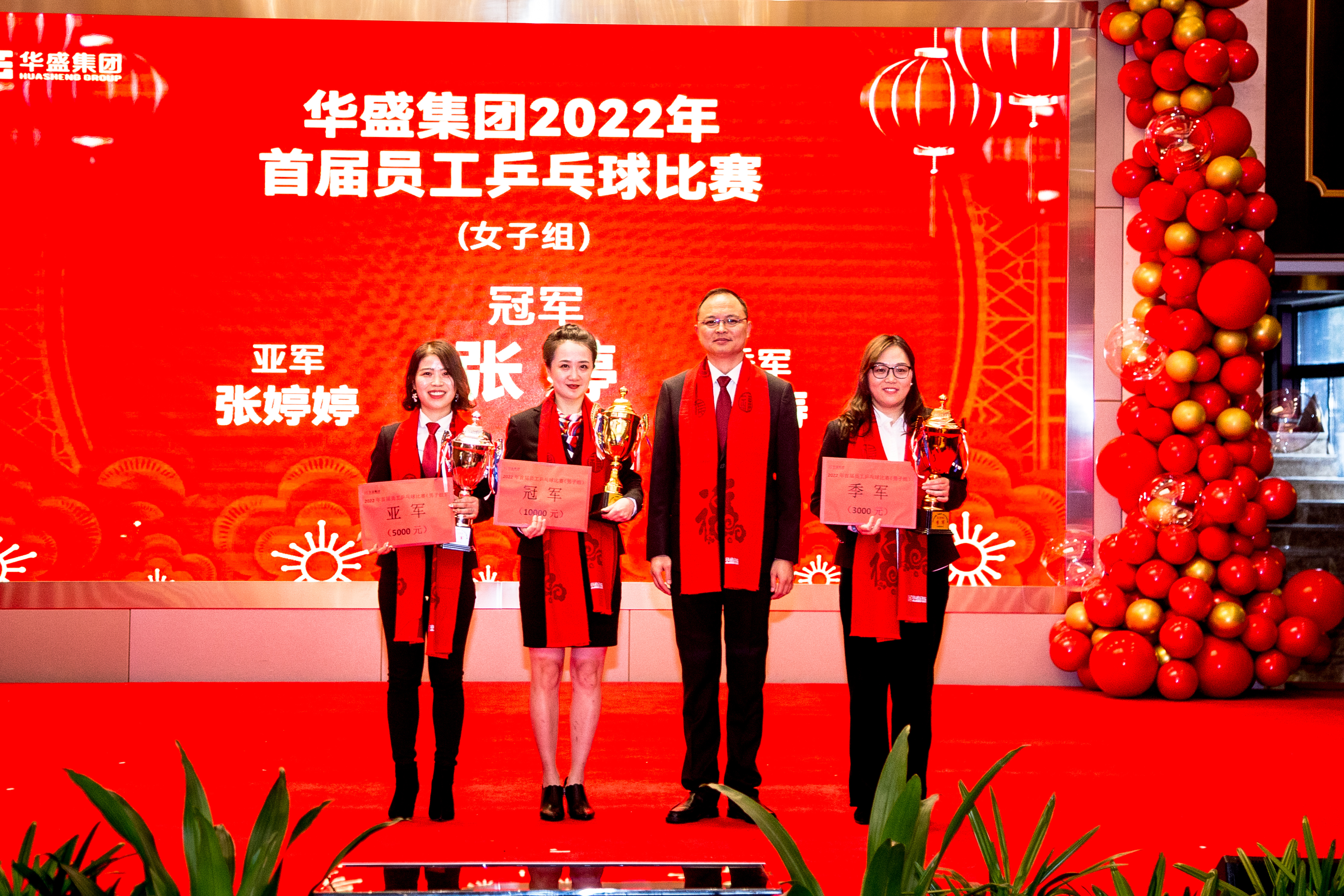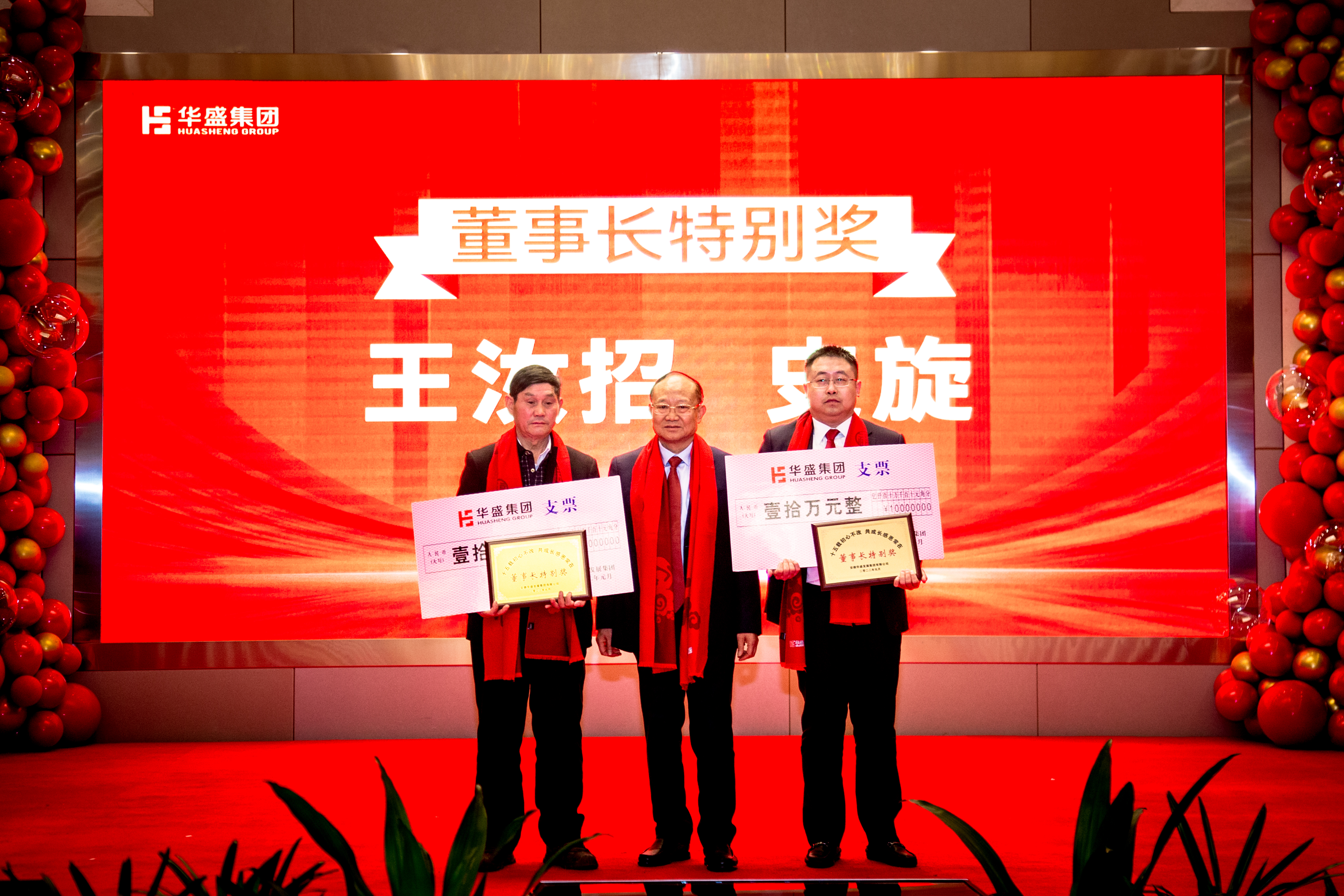 接下来,晚会进入到了激动人心的颁奖环节,集团公司为优秀的华盛人,为作出杰出贡献的华盛功臣们授予了荣誉,并颁发了奖金。这些奖项包括:物业公司先进个人、物业公司忠诚卫士、丘雨公司销售之星、商管公司先进个人、金海公司优秀经理人、金海公司先进个人、集团优秀党员、集团先进个人、集团优秀经理人、集团优秀高管、董事长特别奖等荣誉,同时,华盛集团还为服务满十年及以上的员工颁发了“华盛勋章”,并为2022年首届员工乒乓球比赛的各位获奖选手颁发了奖杯。这次的颁奖仪式,既肯定了大家的工作,也激励了大家的热情,更彰显了华盛的实力。