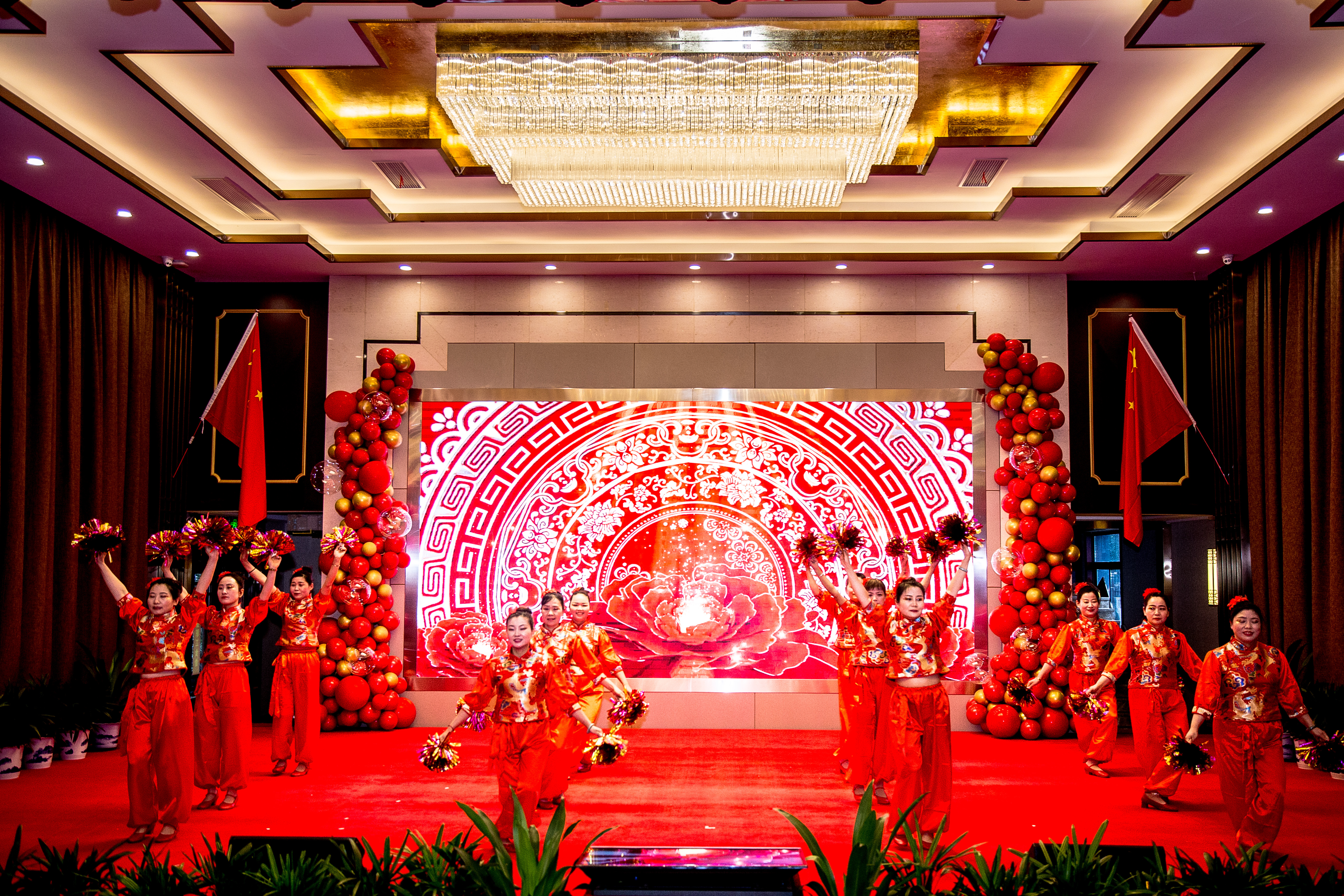 九州盈瑞气,万户沐仙风,华章今再启,盛世春常在。随着激动人心的开场鼓表演《盛世龙鼓》,华盛集团2021年表彰誓师大会暨2022年迎春联欢会正式开始。