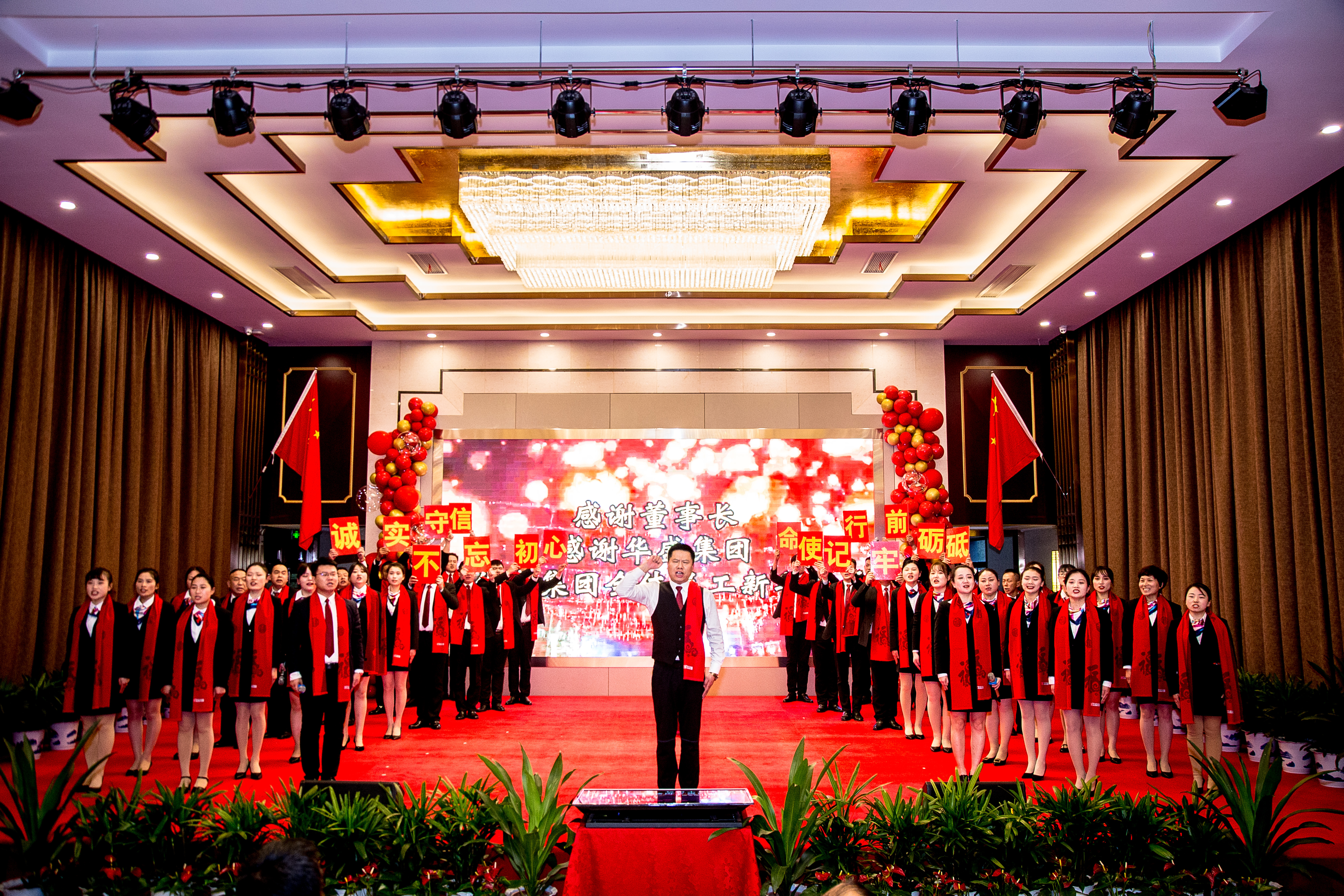 颁奖仪式之后,华盛集团管理层集体上台宣誓。十六年奋斗、十六年追求,十六年风雨,十六年跨越。华盛集团这一年来一路高歌前行,离不开集团管理层勤勤恳恳的工作和赤诚一片的忠心,集团管理层是华盛集团发展的核心力量和中流砥柱,对司忠诚,能打胜仗是每一位华盛经理人应有的使命感和责任感。