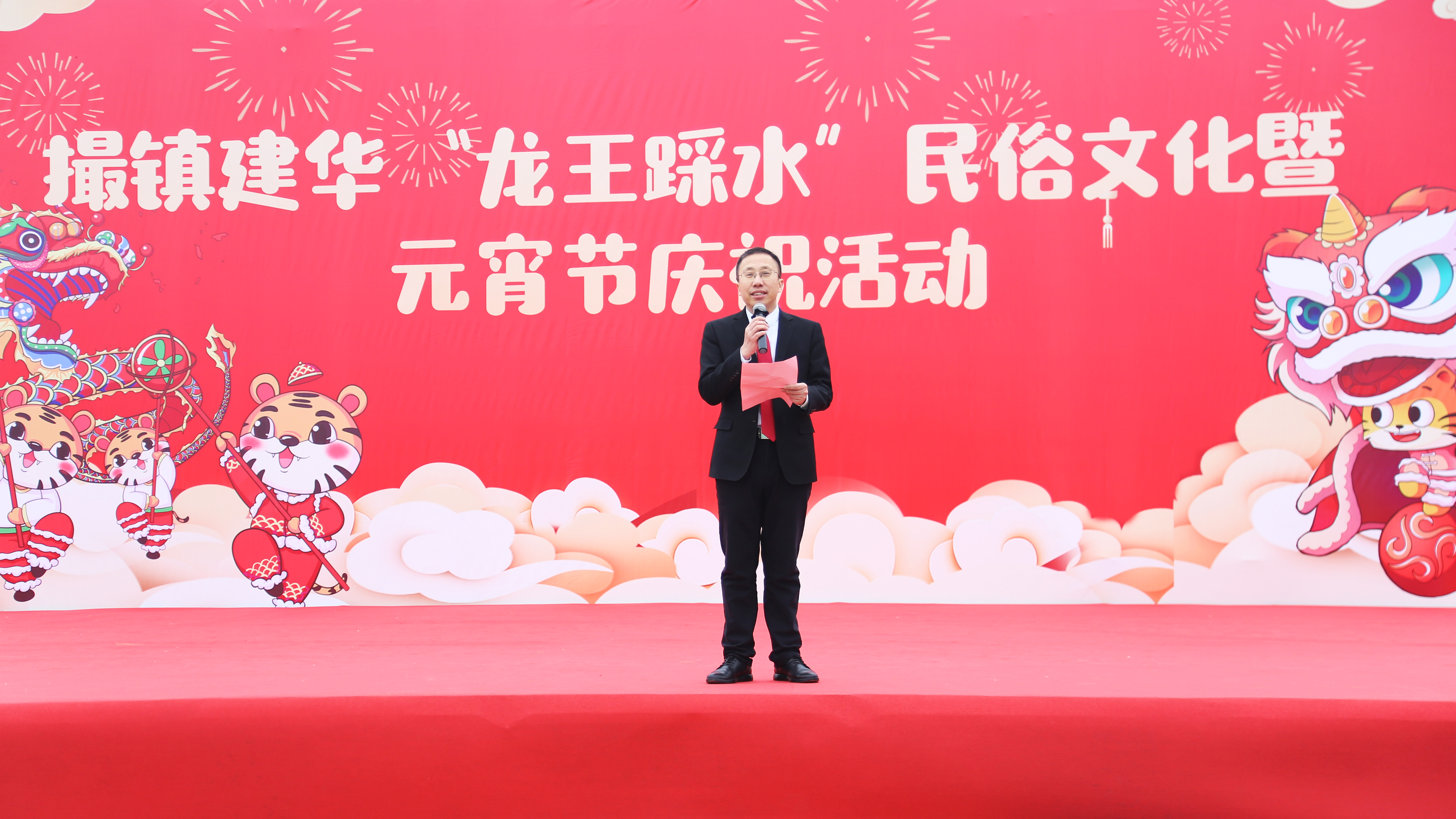 在主持人激情澎湃的开场词之后,肥东县撮镇建华社区“龙王踩水”民俗文化暨元宵节庆祝活动正式开始。首先,华盛集团总裁余安云先生为本次活动致辞,余总向参加本次活动的各位领导和嘉宾,以及建华社区的父老乡亲们表达了衷心的感谢和美好的祝福,希望大家在元宵佳节里阖家幸福、平安喜乐、心想事成、万事如意。