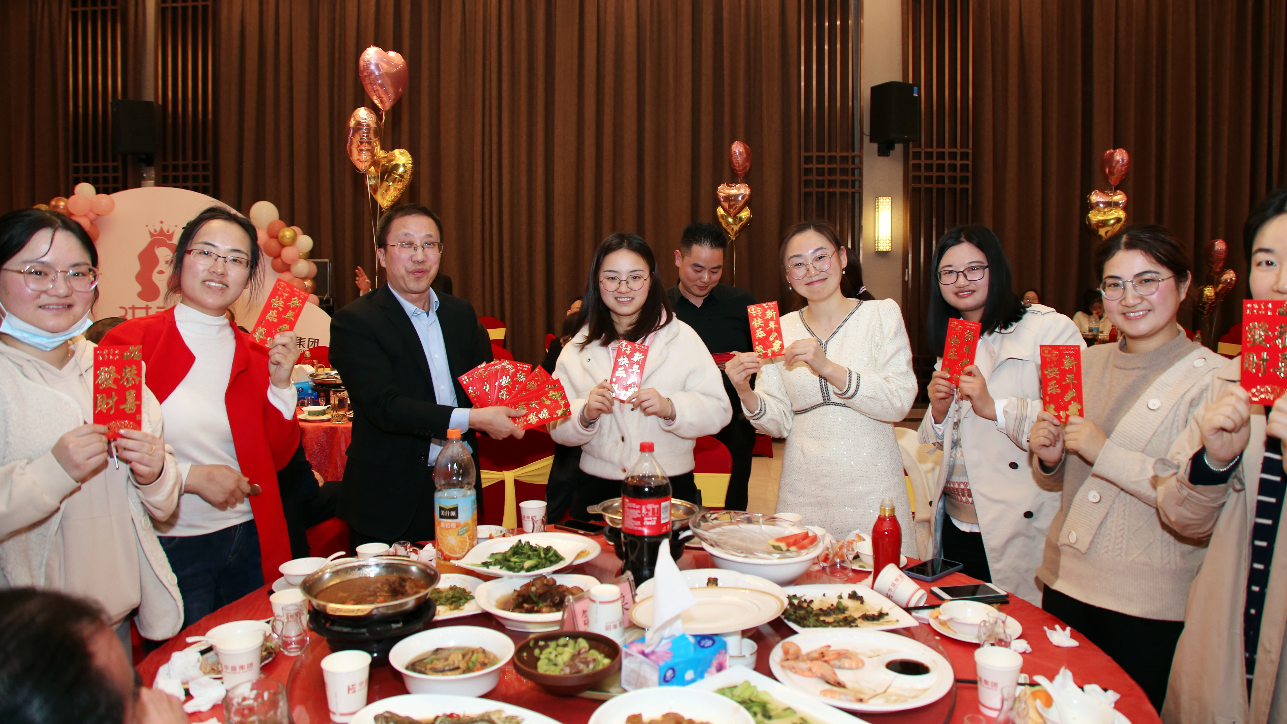 最后,王汝仙董事长带领集团管理层与华盛女神们共同合影留念,在一片欢乐祥和的气氛中,华盛集团2022年“三八女神节”联欢会完美落幕。