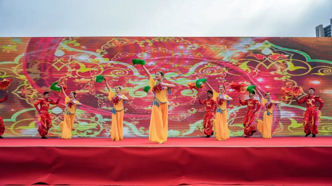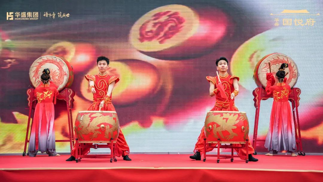 致词结束后,一系列精彩歌舞杂技表演轮番开启,一对舞狮激昂登场,华盛集团总裁余安云先生与上海银睿建筑安装工程有限公司总经理赵路先生上台为祥狮点睛,求吉纳福,昭示着宏伟新篇章的开启。随后,参与开工仪式的各领导代表共同移步至舞台,至此,华盛·国悦府二期项目开工仪式正式启动。