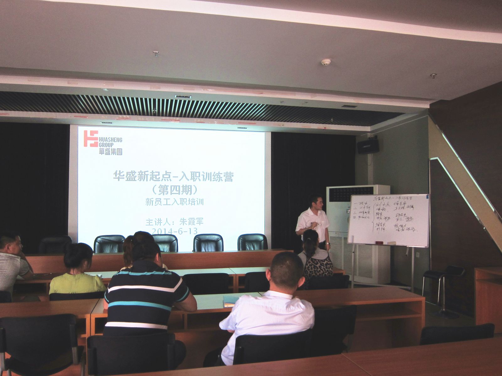 “华盛新起点-入职训练营”第四届新员工入职培训于2014年6月13日在集团多媒体室召开。本次培训由集团公司人力资源经理朱霞军主讲,参训人员为自5月5日入职的7名新员工。入职培训围绕公司发展历程、乐鱼在线、行政规范和人力资源相关规范等内容进行了介绍,并以公司2013年度通过评审并印发的《员工手册》为基础,重点对员工的入离职、考勤、薪酬、福利、培训发展基础制度作出详细解释。